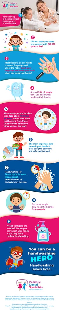 While we’ve been talking about all the bacteria that stick to your hands, your mouth can also be a place that bad bacteria like to hide in and cause damage. This is why it’s so important to see your dentist every six months for a checkup. If your little one is due for a visit, you can book their appointment via our easy online booking form. We can’t wait to see you!